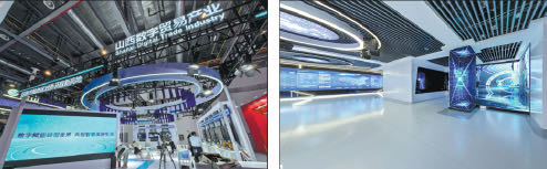 From left: The Shanxi pavilion at the second Global Digital Trade Expo in Hangzhou. Shanxi Data Traffic Ecology Park displays its operating experience and services at the expo. YAN JIE/FOR CHINA DAILY