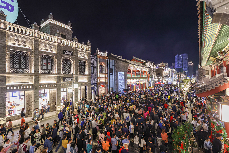 Visitors flock to Zhonglou Street, Taiyuan, Shanxi Province. /CFP