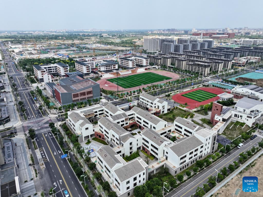 An aerial drone photo taken on May 21, 2024 shows a view of the Xiong'an campus of the Shijiahutong Elementary School and Beijing No. 4 High School in Xiong'an New Area, north China's Hebei Province. (Xinhua/Mu Yu)