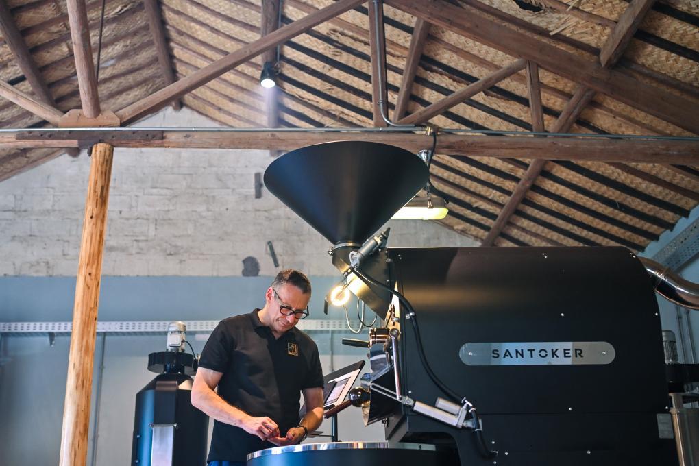Frank Sterzer roasts coffee beans at his cafe in Maoli Village of Cicheng Town in Ningbo, east China's Zhejiang Province, July 23, 2024. (Xinhua/Jiang Han)