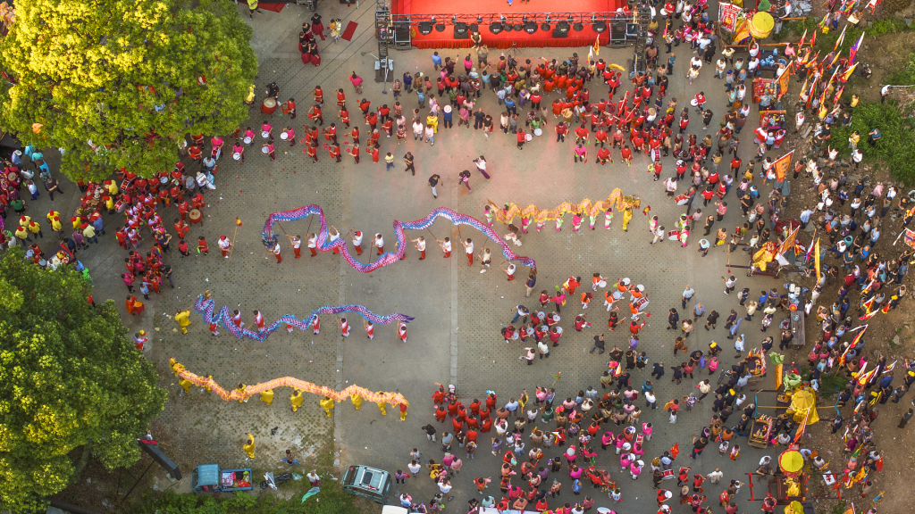 In front of the Fengshan Temple, traditional performances such as dragon dances, folk singing, and especially the Tai Mengjiang – which literally means "Lift A Valiant General" – fill the air with the sound of drums and excited chatter. Villagers gather to visit the temple, admire blooming lotus flowers, and burn incense as a blessing.