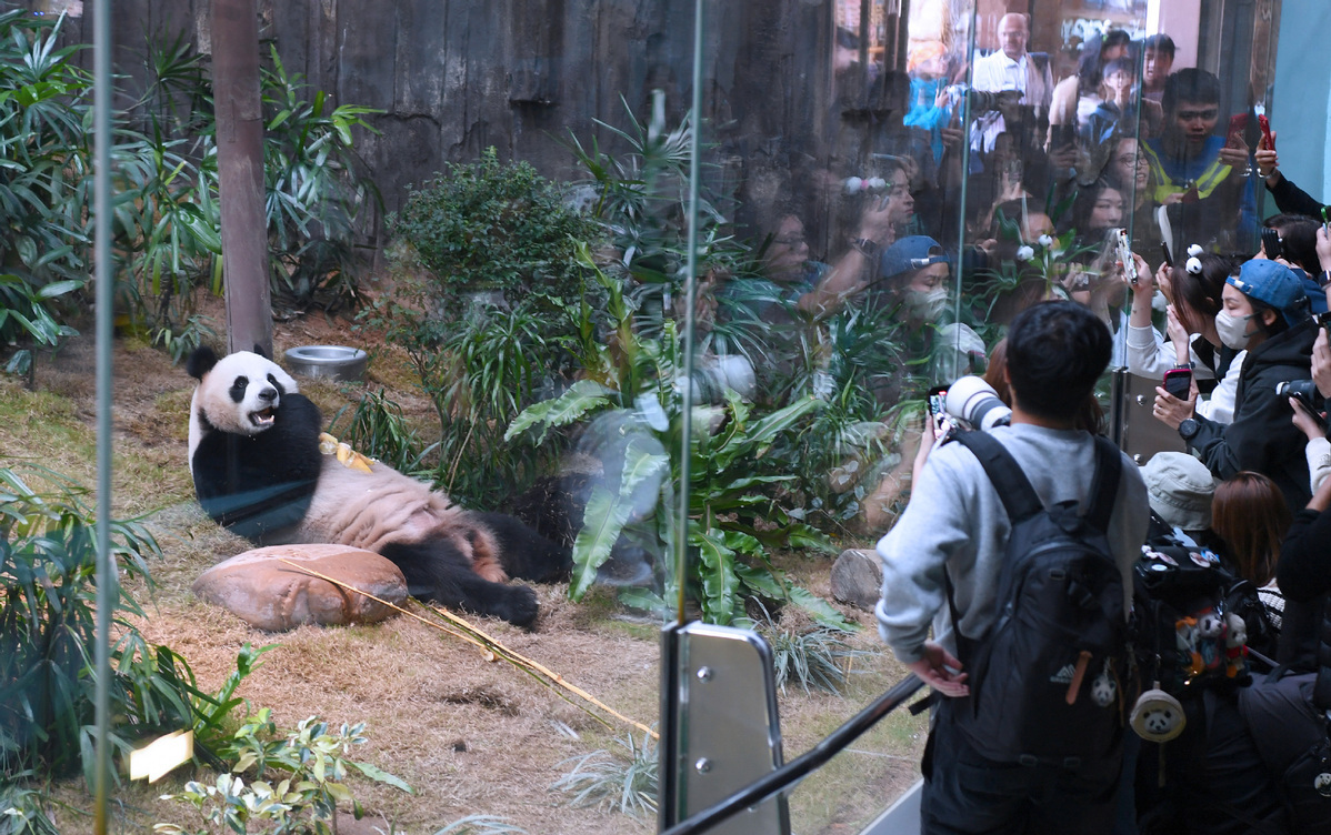 Inside Ocean Park's crowded Hong Kong Jockey Club Sichuan Treasures enclosure, which houses the giant pandas, visitors inched forward, raising their phones to capture images of the animals through the glass.