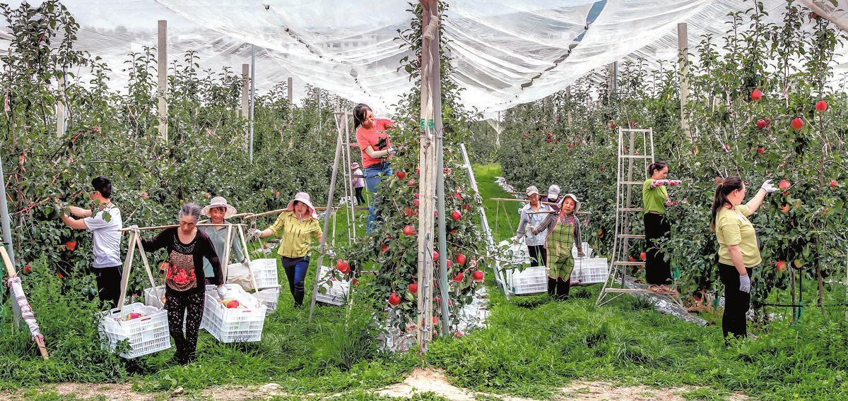 Farmers pick apples at a production base of Zhaotong Chaoyue Agriculture in Zhao tong, Yunnan province. XU JING/FOR CHINA DAILY