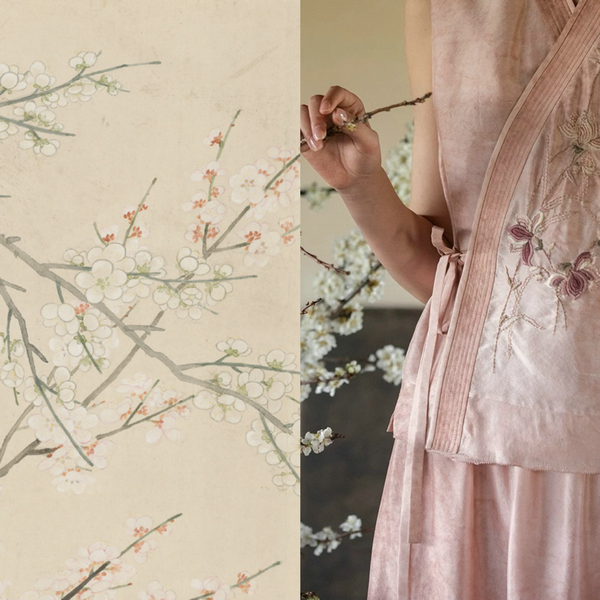 New Chinese Style dresses and ancient Chinese painting. [Photo provided to chinadaily.com.cn]