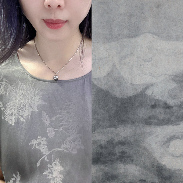 A woman in New Chinese Style silk dress (left) inspired by an ink painting by Mi Youren from the Song Dynasty (960-1279). [Photo by Hu Zhe/chinadaily.com.cn]