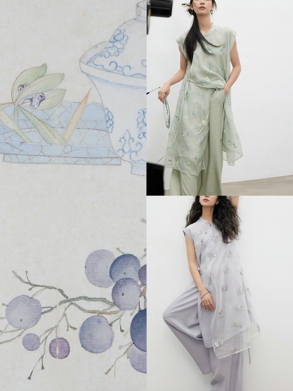 Featuring standing collars, crossed collars, symmetrical fronts and pleats, these outfits utilize organic fabrics like silk, linen, and cotton, adorned with decorations that accentuate traditional auspicious meanings through clasps, knots, embroidery, and printing. Such fusion of traditional elements with new materials, techniques, and modern technology showcases the beauty of Eastern traditional aesthetics and rich cultural heritage.