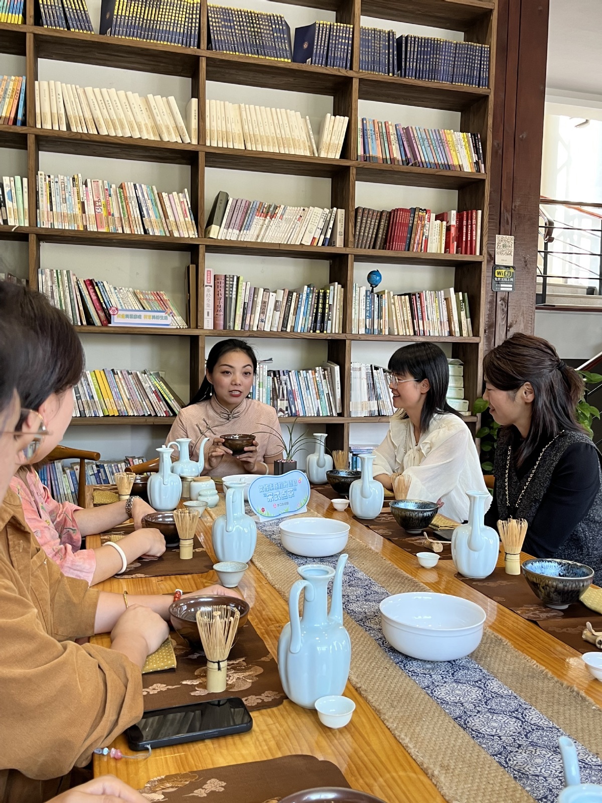 "On every floor, there are books about tea and collections of essays from local authors. Guests can enjoy tea while reading, which creates a quiet, immersive experience."
