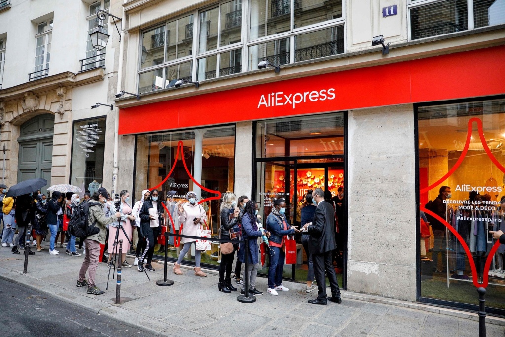People waiting in line in front of an AliExpress pop-up store in Paris, France, September 24, 2020. /CFP