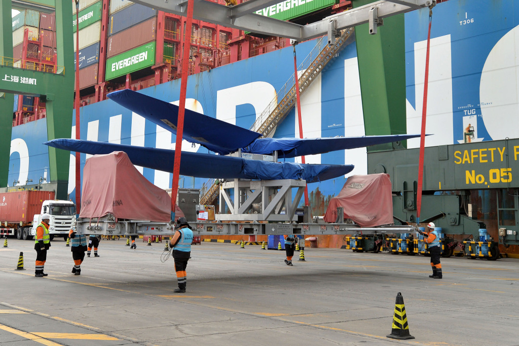 Aircraft components being received at Tianjin Port, China, March 6, 2024. /CFP
