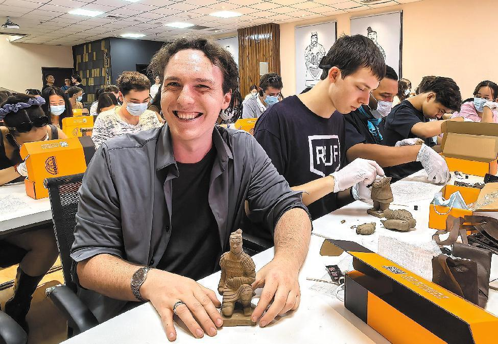 A US university student learns to repair a Terracotta Warrior replica at an exchange activity in Xi'an, Shaanxi province. QIN FENG/CHINA DAILY